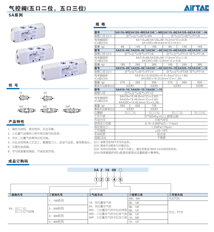 气控阀(五口二位,三位)5A系列