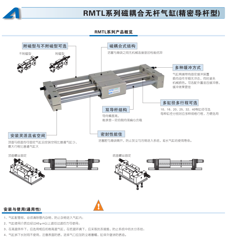 RMTL系列磁耦合无杆气缸(精密导杆型)