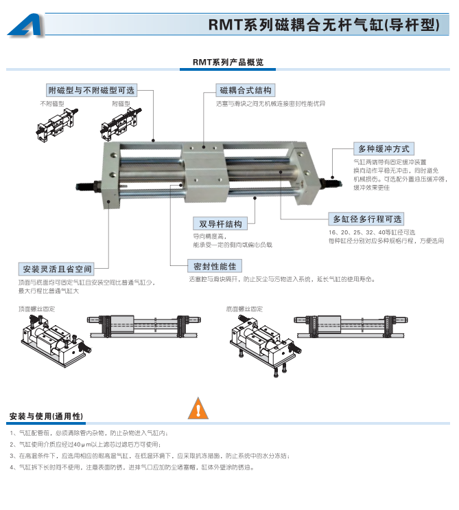 RMT系列磁耦合无杆气缸(导杆型)